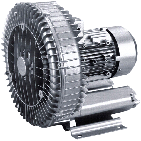 When the impeller of the high-pressure blower rotates, due to the centrifugal force, the wind vane makes the gas move forward and outward, thus forming a series of spiral movements. The air between the blades of the impeller is spirally accelerated and the gas outside the pump body is squeezed into the side groove (inhaled by the suction port T). When it enters the side channel ②, the gas is compressed, and then it returns to the blades of the impeller 1 to accelerate the rotation again. When the air passes through the impeller and side slot along a clamped spiral track, each impeller increases the degree of compression and acceleration. With the progress of rotation, the function of the gas increases, which further increases the gas pressure along the side channel. When the air reaches the connection point between the side seeding and the discharge flange (the side channel narrows at the outlet & gt;), the air is extruded out of the blade and discharged from the pump body through the outlet muffler 4.