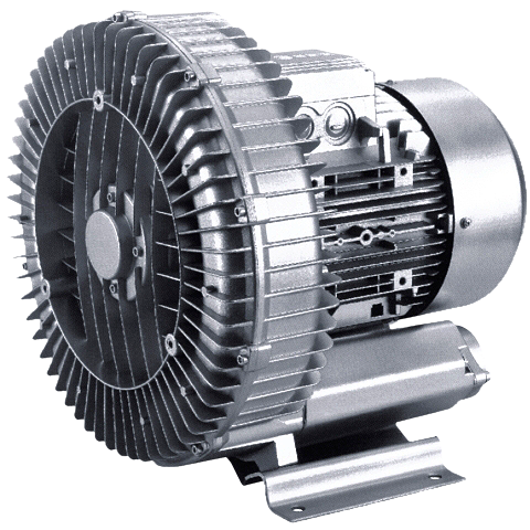 When the impeller of the high-pressure blower rotates, due to the centrifugal force, the wind vane makes the gas move forward and outward, thus forming a series of spiral movements. The air between the blades of the impeller is spirally accelerated and the gas outside the pump body is squeezed into the side groove (inhaled by the suction port T). When it enters the side channel ②, the gas is compressed, and then it returns to the blades of the impeller 1 to accelerate the rotation again. When the air passes through the impeller and side slot along a clamped spiral track, each impeller increases the degree of compression and acceleration. With the progress of rotation, the function of the gas increases, which further increases the gas pressure along the side channel. When the air reaches the connection point between the side seeding and the discharge flange (the side channel narrows at the outlet & gt;), the air is extruded out of the blade and discharged from the pump body through the outlet muffler 4.